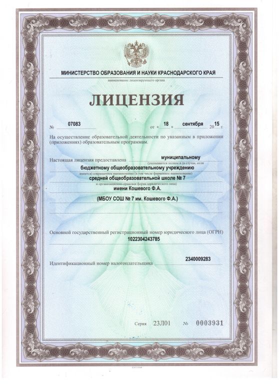 | Полное наименование образовательной организации* | Муниципальное бюджетное общеобразовательное учреждение средняя общеобразовательная школа №7 имени Кошевого Ф.А. |